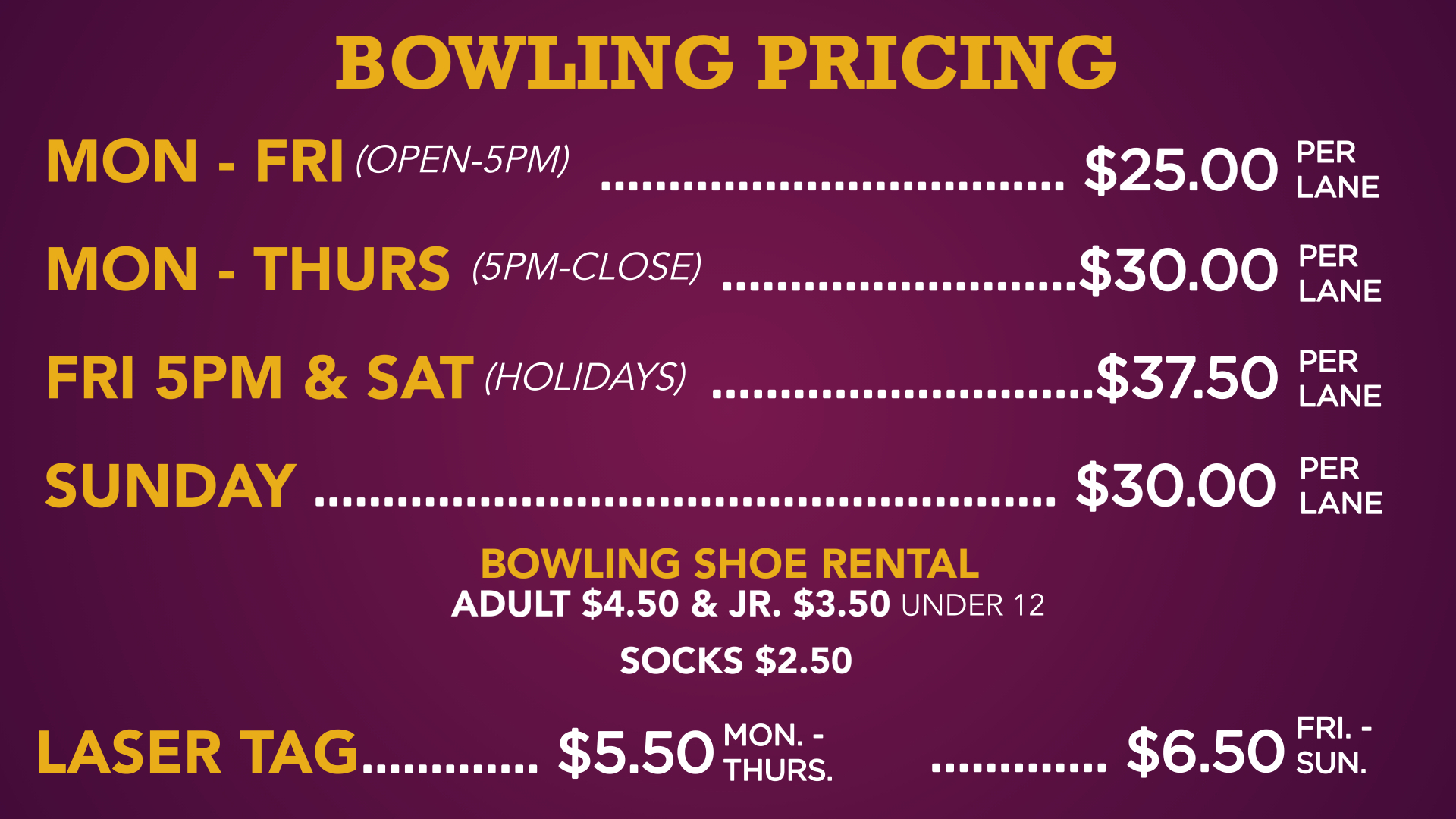 ALL STAR BOWLIG – SANDY PRICING